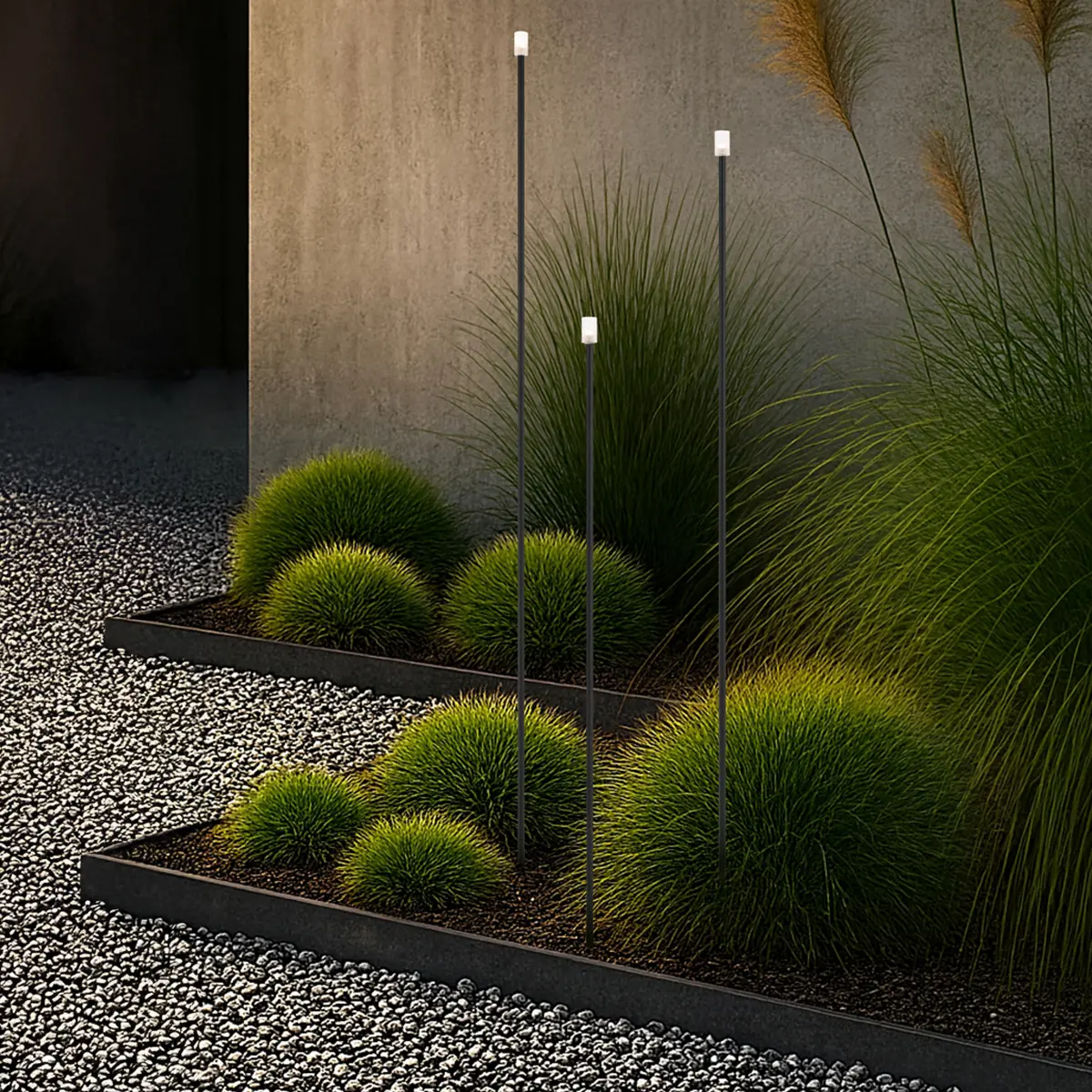 The Rush post light set delivers a sleek, modern lighting solution for contemporary gardens. Featuring three slim black post lights in varying heights, Rush creates layered illumination and depth across outdoor areas. With low-voltage integrated LED technology, a warm 3000K output, and an IP65 rating, it’s a practical and stylish choice for pathways, garden beds, and landscape accents.